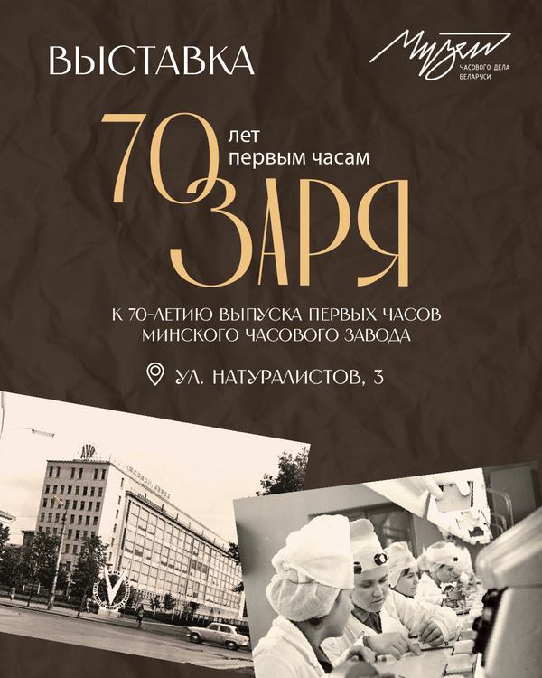 Минский часовой завод представляет лимитированную коллекцию «Заря», созданную в честь 70-летия выпуска первых часов с этим легендарным именем. Премьера коллекции пройдет в рамках открытия тематической выставки в Музее часового дела Беларуси (г.Минск, ул. Натуралистов, 3), где можно будет увидеть исторические прототипы и их современное воплощение.
